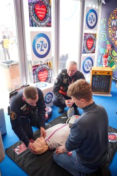 W niedzielę graliśmy dalej, już podczas głównego Finału, którego PZU było oficjalnym ubezpieczycielem. Na błoniach Stadionu Narodowego w specjalnej strefie programu „Ratujemy i Uczymy Ratować” i PZU można było się nauczyć zasad pierwszej pomocy, w tym m.in. potrenować na fantomach resuscytację krążeniowo-oddechową (RKO), korzystanie z defibrylatorów, ustawianie poszkodowanego w pozycji bocznej bezpiecznej czy ocenę stanu poszkodowanego. Tuż obok sceny stanęło młyńskie koło oraz symulatory dachowania i zderzeń hulajnogi z przeszkodą. Dla uczestników dostępna była także przychodnia medyczna WOŚP-PZU Zdrowie, w której odwiedzający mogli skorzystać z darmowych konsultacji.